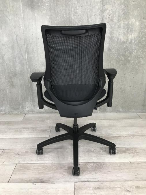 【在庫入替セール品!】【三次元フォルムが身体にしっかりフィット!】■イトーキ エフチェア 可動肘付 ブラック 背裏ストライプメッシュ ※座面に擦れ・ホツレがあるためお安く! 【ITOKI fチェア】