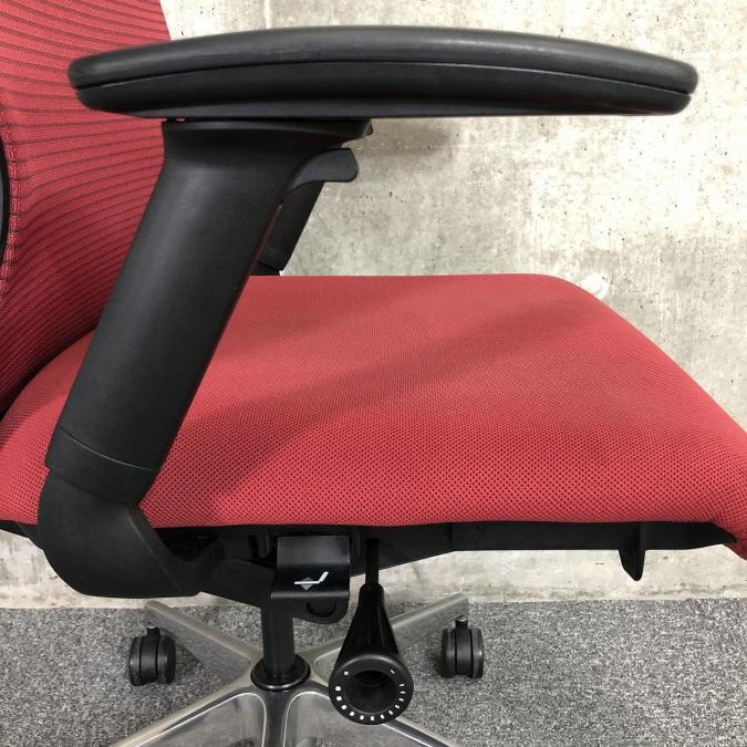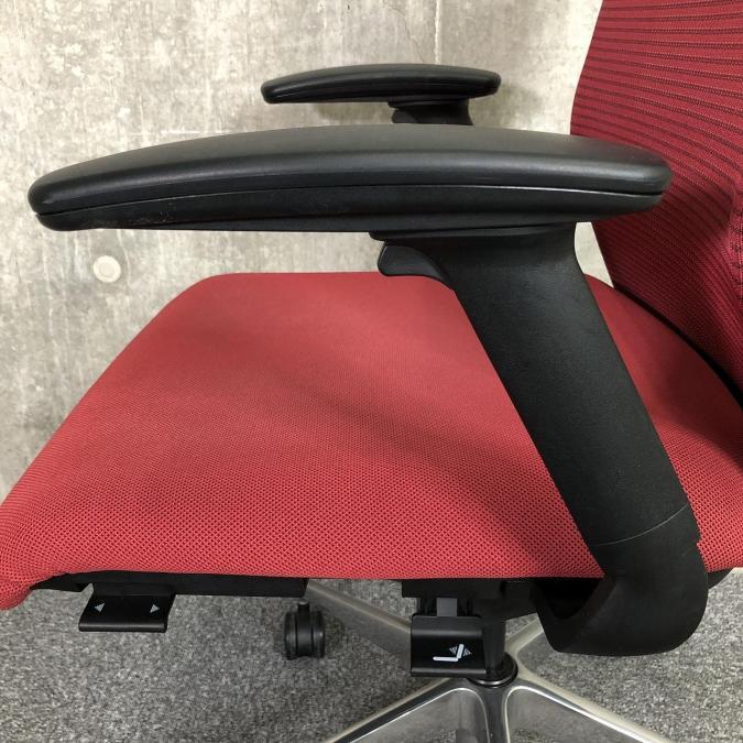 また、個人的にオススメなのは『フルアジャスタブル肘』というアーム部分が斜め前に伸びていくタイプの肘置きを搭載したモデルです。高さを上げれば上げるほどパッドが前方に迫り出していくので、デスクワークの際にちょうど肘を置きたい場所に肘置きがきます。これがとても快適なので、ぜひ一度お試しいただきたいです!*エルフィチェアの肘パーツはフルアジャスタブル肘の他に、固定肘、アジャスタブル肘などがあります。
