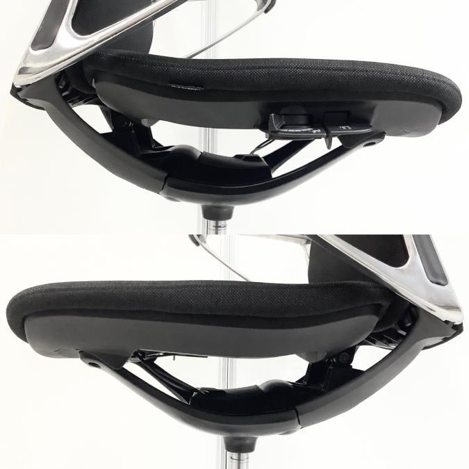 - 座面の高さ調節や背と座がシンクロしてスライドするアンクルチルトリクライニングなど、基本的な調節機能を搭載。
