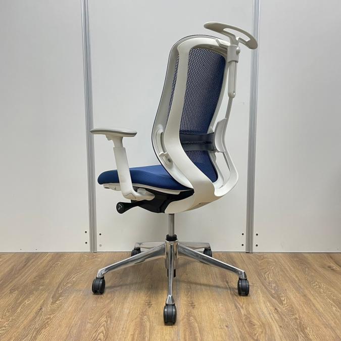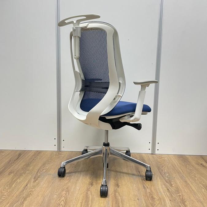 【新品ヘッドレスト交換済み】オカムラ/シルフィー/ブルー/可動肘