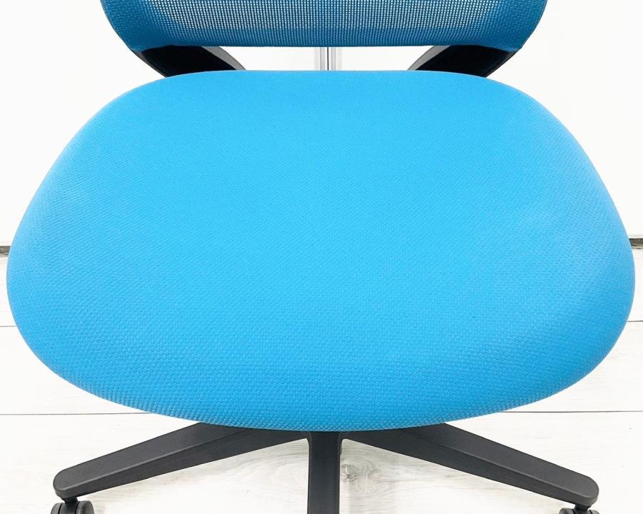 ★【商品入替のため、残り1脚限り】コクヨ製 ミトラシリーズ ターコイズブルー×ホワイトフレーム メッシュ背面 ランバーサポート付 快適な座り心地と充実機能 肘無しローバックチェア!!