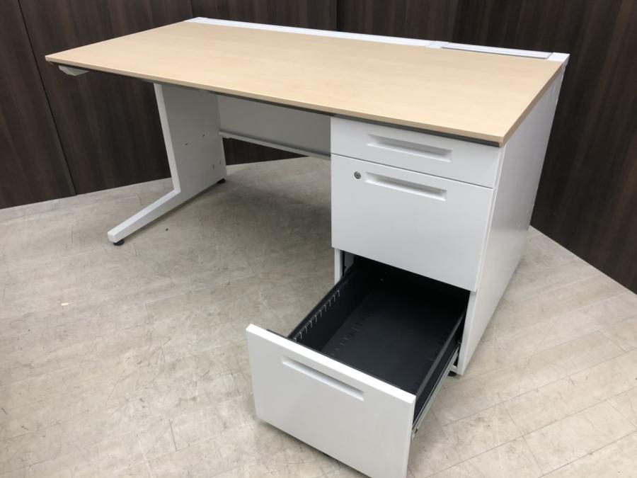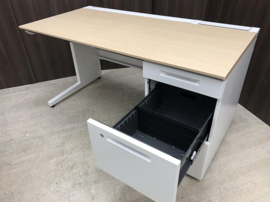 【効率の良い収納付きデスク・幅1400㎜で広く使える!】■コクヨ(KOKUYO)製 iSシリーズ 片袖机 ■天板:木目ナチュラル×ホワイト脚 引出付き 配線ダクト ■シリンダー鍵【入れ替えセール品】サーキュラーバリューCO2削減量の算出について