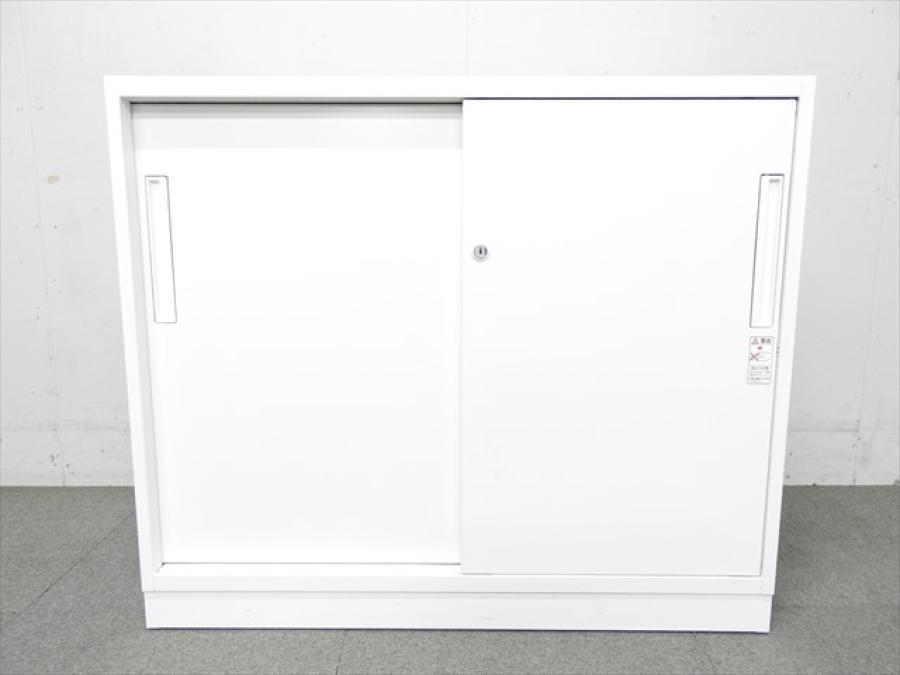 【スライド引き戸だから開閉スペースに困らない!】■コクヨ(KOKUYO)製 エディア(EDIA)シリーズ 2枚引き違い書庫 ローキャビネット シリンダー錠 天板付き ベース付き ホワイト シリンダー錠 収納 中古家具 格安 福岡 オフィス家具 九州最大級《オフィスバスターズ福岡博多店は、福岡を拠点として、日本全国へ中古オフィス用品・オフィス家具を提供しております》