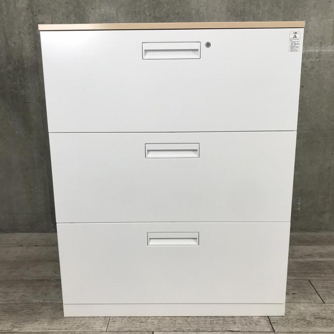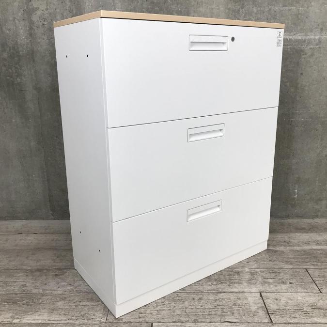 【使いやすいは正義!】A4書類が大量に収納可能!木目天板付きの3段ラテラルキャビネット!【外部倉庫在庫品】【AO】 ■コクヨ/エディア/ホワイト- 立川・八王子店