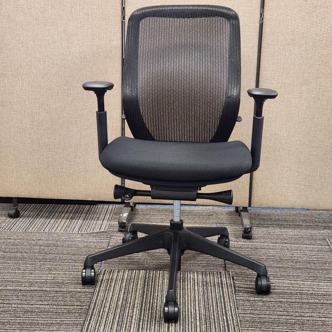 【前傾チルト機能付き】【オカムラ製品で最も人気を集める高機能チェア!】■オカムラ(okamura)製 シルフィ(Sylphy)チェア 肘付き ハイバック ファブリックタイプ ■可動肘 ■ブラック
