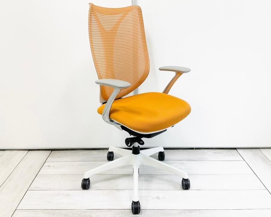 在庫入替 明るいオレンジでモチベーションアップ!前傾機能で作業効率アップ!安定感のある座り心地で人気な大好評サブリナチェアが大量入荷中! ■オカムラ(okamura)製 Sabrina(サブリナ) メッシュ ハイバック ■固定肘付き ■オレンジ×ホワイトフレーム【ご自宅用にもオススメ!】【華やかなアクセントカラー!女性の多いオフィスに】残り3脚のためお安く 滞サーキュラーバリューCO2削減量の算出について