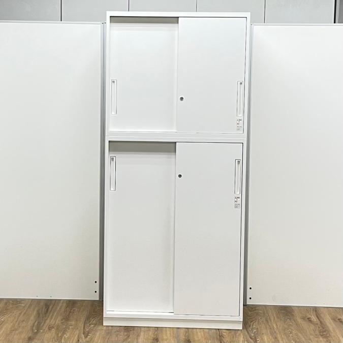 【レア】コクヨ製 エディアシリーズ ホワイトカラー 注意※W800/D400タイプ 上下2枚戸 引き違い書庫セット!!- 京都東寺店