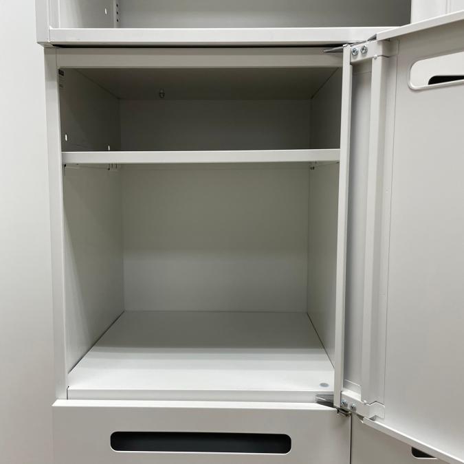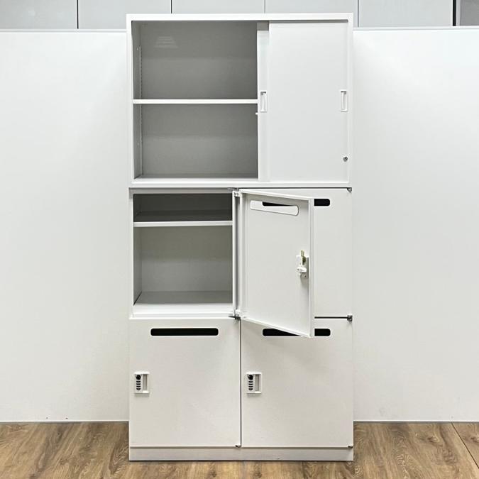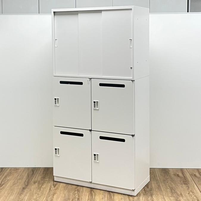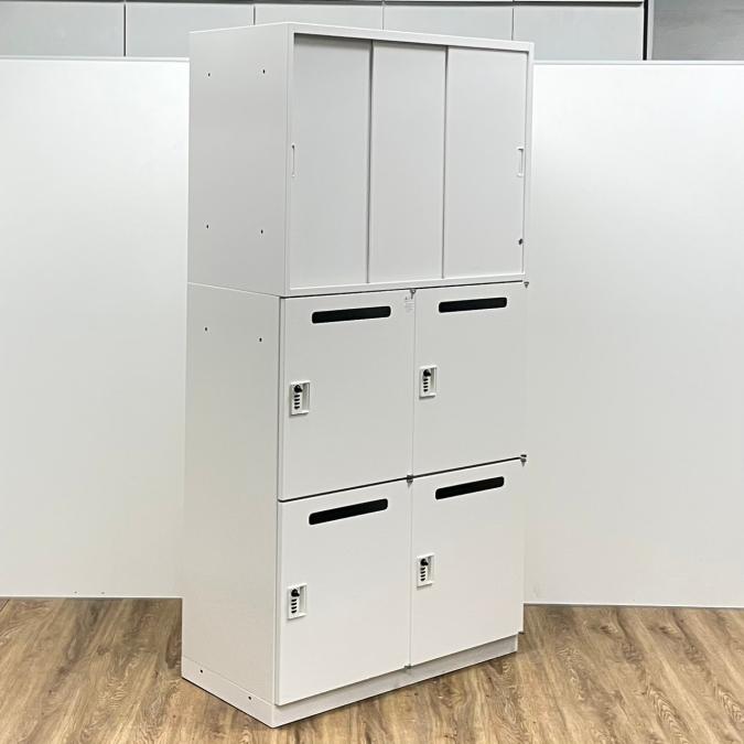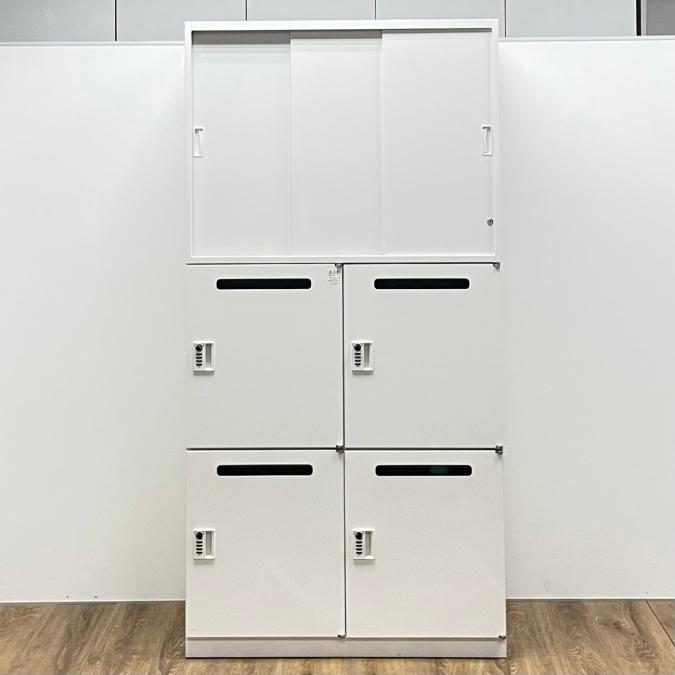 【商品入替のため、残り1台限り】イトーキ製 シンラインシリーズ ホワイトカラー ダイヤル錠式 投函口付 フリーアドレスやコワーキングオフィスの相棒! 上:引き違い/下:4人用パーソナルロッカー 上下セット!!※非常解除キーは付属しておりません- 京都東寺店