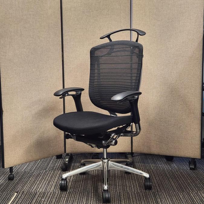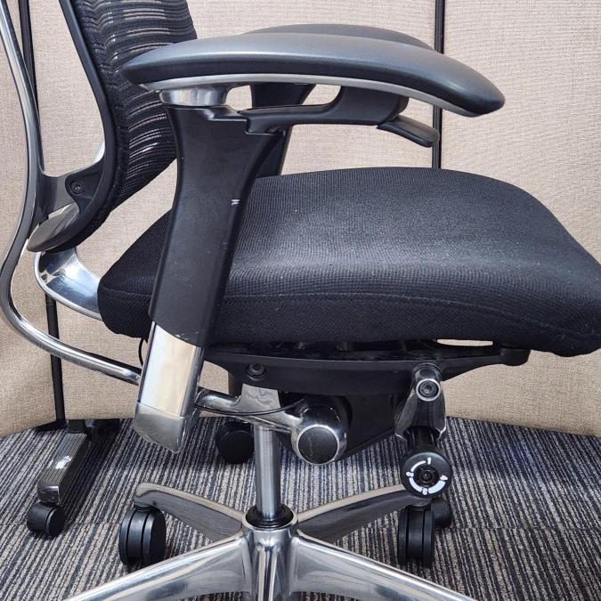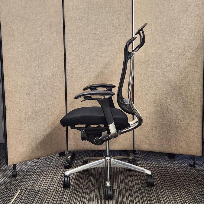 【世界で認められた革新的タスクチェア!人間工学に基づいた快適な座り心地を実現!】■オカムラ(okamura)製 コンテッサ(Contessa)チェア ハイバック 肘付き 背面メッシュ ■可動肘・ランバーサポート付 ■ブラック ※肘スレ有