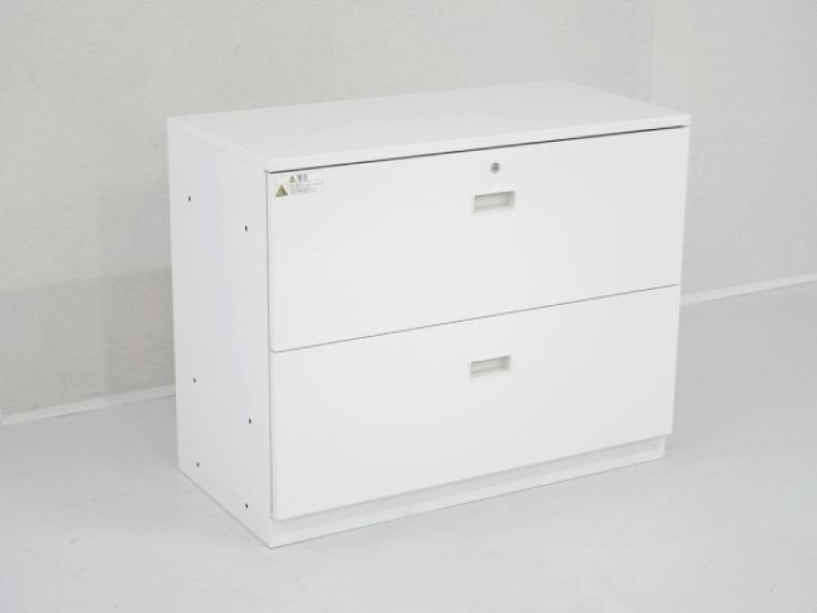 【珍しい2段ラテラルタイプ!】耐久性・機能性を兼ね備えたキャビネット!スペースにジャストフィットする引き出し型収納 ■イトーキ/シンライン/ホワイト シリンダー錠