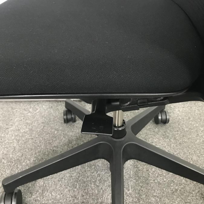 また座面下のレバー操作により、座面を40mmのストロークで好みの位置に調節ができます。