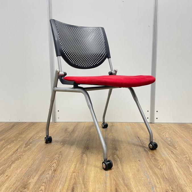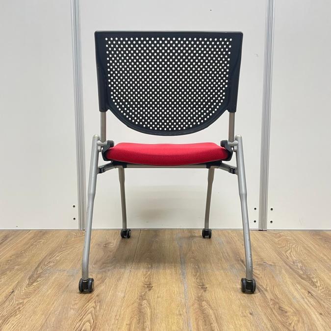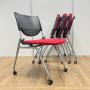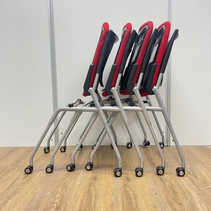 【4脚セット!!】オカムラ製 プロスタックシリーズ レッドカラー プレーンタイプ 背面樹脂メッシュ レッド(座面)×ブラック(背メッシュ) コンパクトに積み重ねて収納 ネスティングチェア!!- 京都東寺店