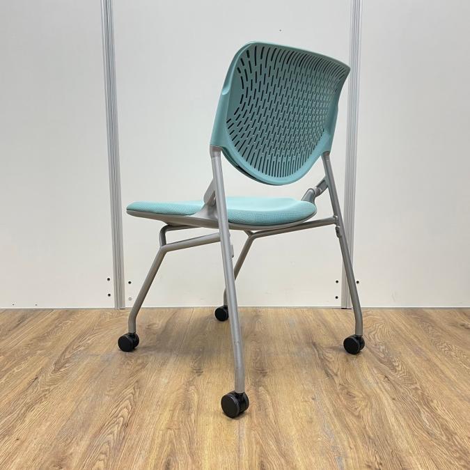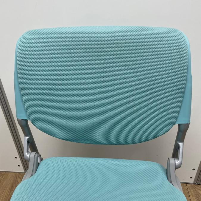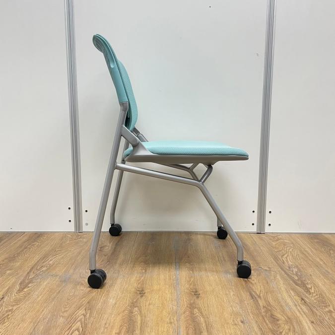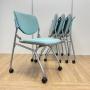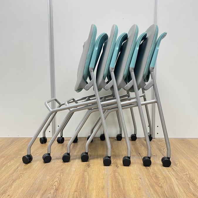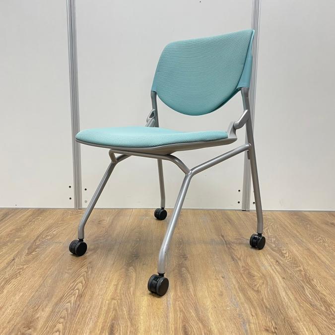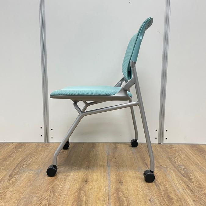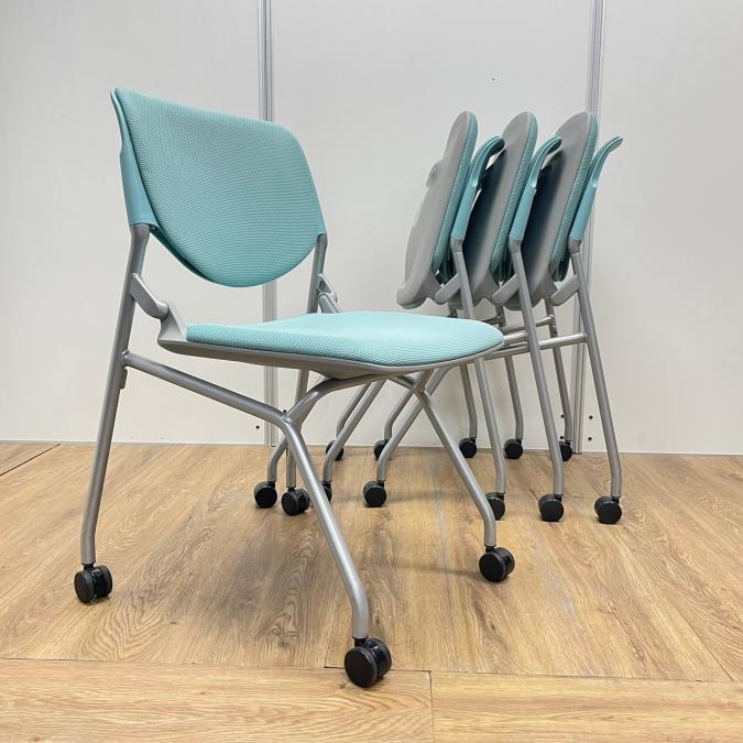【4脚セット!!】オカムラ製 ルナシリーズ セージカラー 背パッド付 軽快なデザインが人気・使わない時は重ねて収納可能! ネスティングチェア!!- 京都東寺店