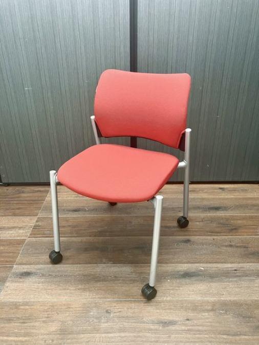 【1脚限り】オカムラ製 スタッキングチェア キャスター付き 8147シリーズ レッド- 在庫数