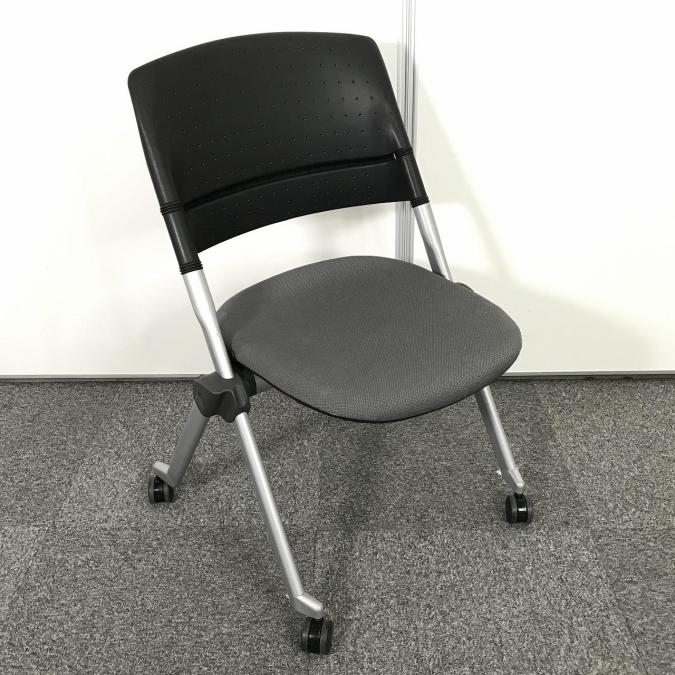 【在庫入替セール品】【定価約7万円】【スタッキング、ネスティング両方で収納可能!会議室・ミーテイングルームに!】■オカムラ リータ (LITA) ネスティングチェア スタッキングチェア ■4本脚 キャスタータイプ ■グレー- 仙台店