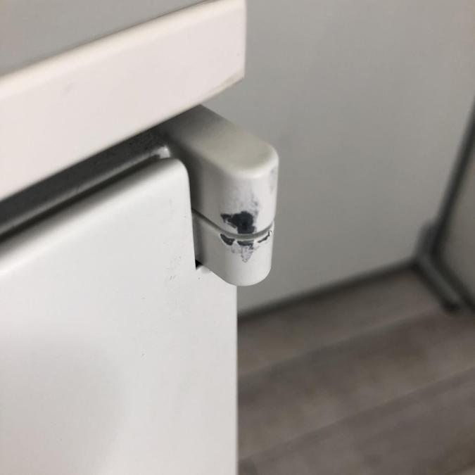 - 多数不具合あり引出の開閉不可、施錠不可、棚板無しといったその書庫の本来の効用を果たすための機能以外の多数が使用不可(例、扉、引出の開閉がしづらいなどがある。 )