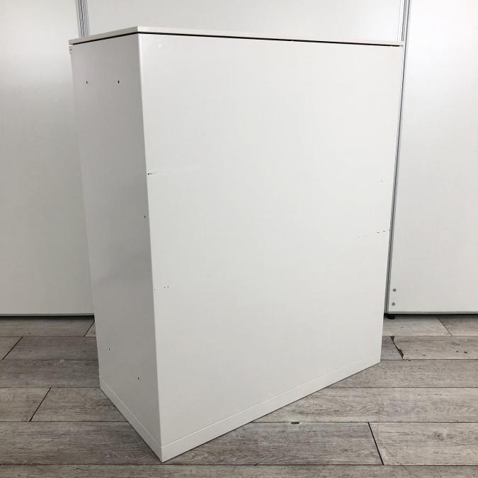 【幅800㎜】【オフィスの書類をスッキリ整理!取っ手がどの方向からでも開くマルチハンドルが人気!】■オカムラ(okamura)製 レクトラインシリーズ(Rectline) 両開き書庫 ローキャビネット W800㎜ ■天板・ベース付 ■ホワイト ■シリンダー錠