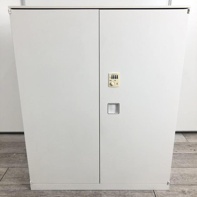 【入替セール】【ダイヤル錠タイプ】【オフィスの書類をスッキリ整理!】【取っ手がどの方向からでも開くマルチハンドルが人気の書庫シリーズ!】■オカムラ(okamura)製 レクトライン 両開き書庫 ■ホワイト ■天板・ベースつき【G2】- 春日部・越谷店