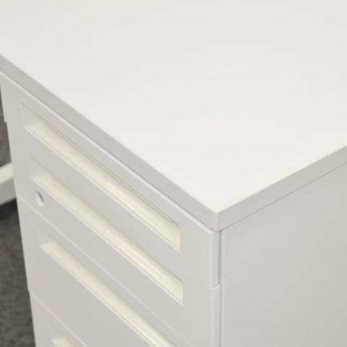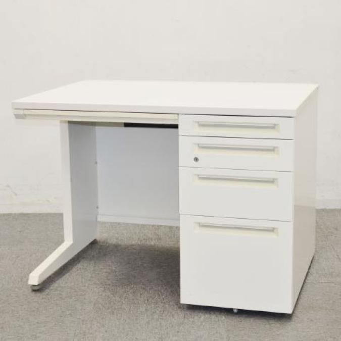 【T11】【商品入替のため、残り6台限り】オカムラ製 アドバンシシリーズ ホワイトカラー 4段収納で整理も完璧! コンパクトで清潔感のあるオフィス W1000片袖机!!