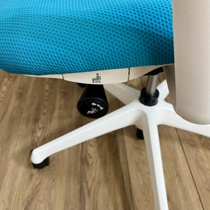 【今人気のワークチェア!】働く姿勢を変えるオフィスチェアが入荷!前傾機能付きの新感覚のオフィスシーティング!包み込まれるような快適な座り心地! ■オカムラ/シルフィーチェア/ブルーグリーン コートハンガー付