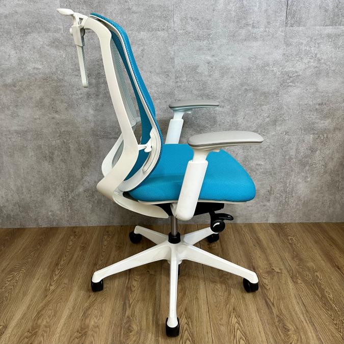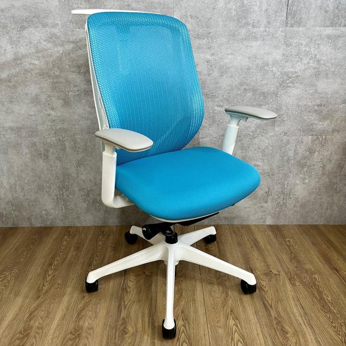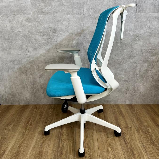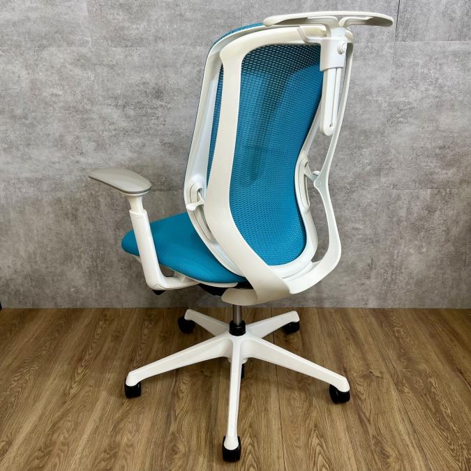 《現物写真だから安心!》オカムラ製の人気オフィスチェア【シルフィーメッシュ/可動肘/ヘッドレスト付き/ブルーグリーン】が先着1名様ご案内可能です!