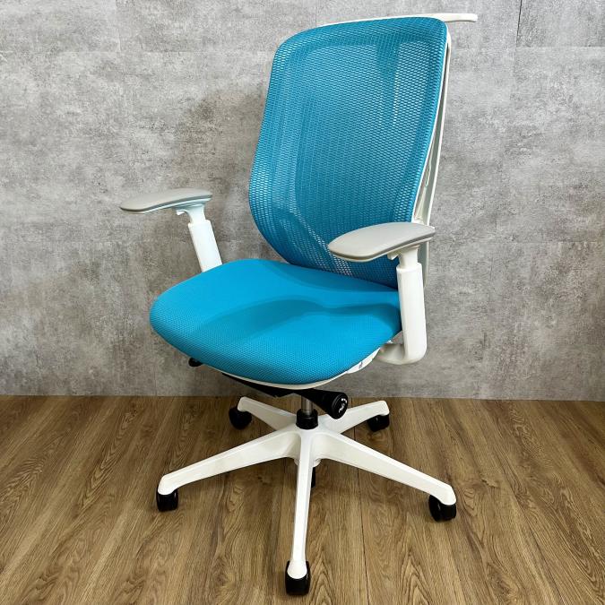 《現物写真だから安心!》オカムラ製の人気オフィスチェア【シルフィーメッシュ/可動肘/ヘッドレスト付き/ブルーグリーン】が先着1名様ご案内可能です!