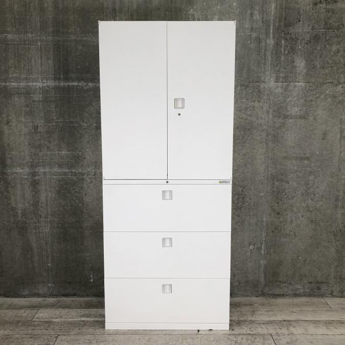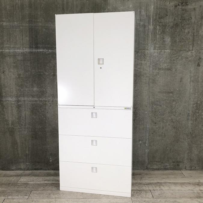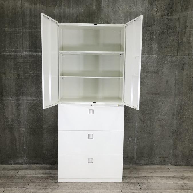 【大容量!人気商品の上下書庫セット】【オフィス書類を一気に整理!】■オカムラ(okamura)製 レクトライン 両開き戸+3段ラテラル 書庫セット ■ホワイト在庫がある店舗一覧