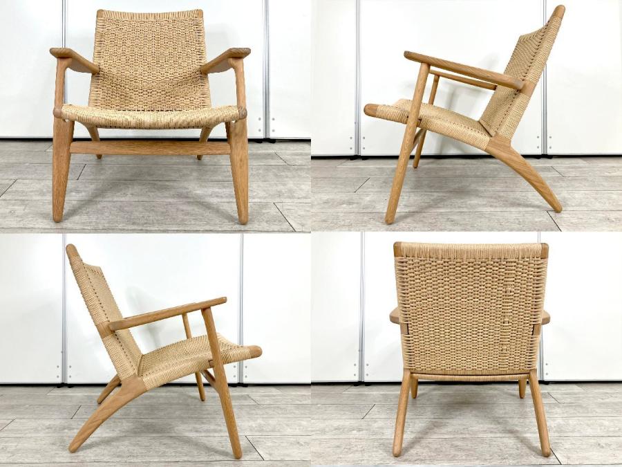 1950年発表のCH25は、ウェグナーがカール・ハンセン&サンにデザインした最初のコレクションの一つです。当時トレンドとなっていた、座面の低い、使用感のすぐれたイージーチェアという要望に応えたデザインとなっています。