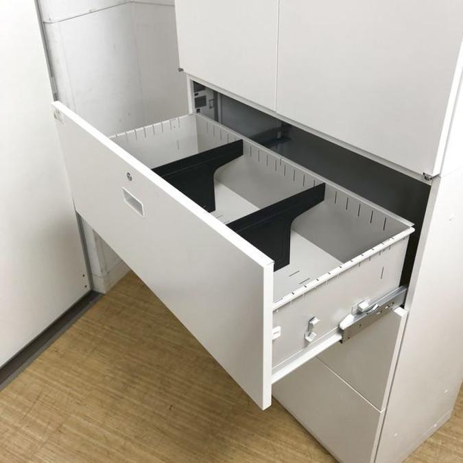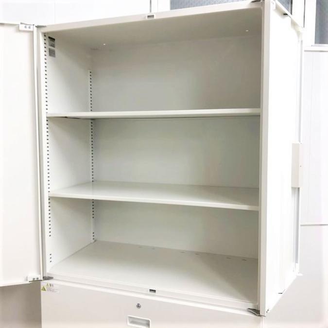 【T11】【商品入替のため、残り1台限り】イトーキ製 シンライン ホワイト W900xD450xH2140サイズ シリンダー錠 高品質で安心のスチールキャビネット! コレ1台で書類が一気に整理できます! 両開き+3段ラテラル 上下書庫セット!!