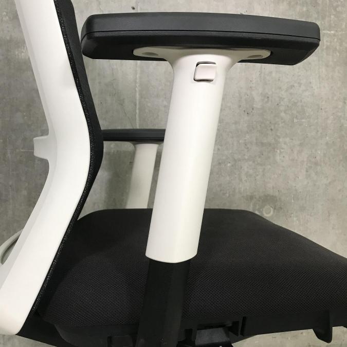 また、個人的にオススメなのは『フルアジャスタブル肘』というアーム部分が斜め前に伸びていくタイプの肘置きを搭載したモデルです。高さを上げれば上げるほどパッドが前方に迫り出していくので、デスクワークの際にちょうど肘を置きたい場所に肘置きがきます。これがとても快適なので、ぜひ一度お試しいただきたいです!*エルフィチェアの肘パーツはフルアジャスタブル肘の他に、固定肘、アジャスタブル肘などがあります。