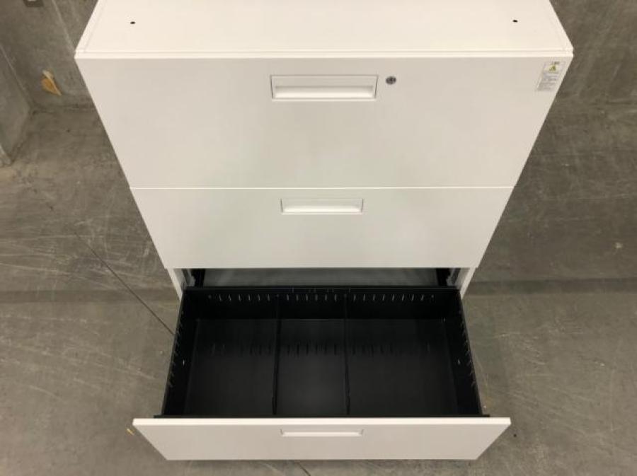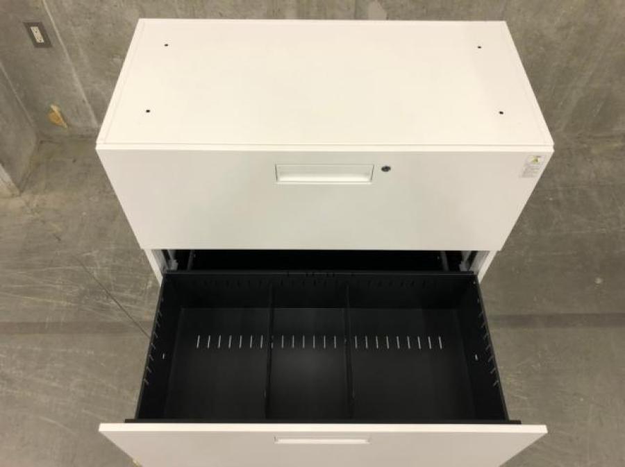 引き出しタイプの収納家具で書類を横方向にも並べて収納出来るのが特徴です。