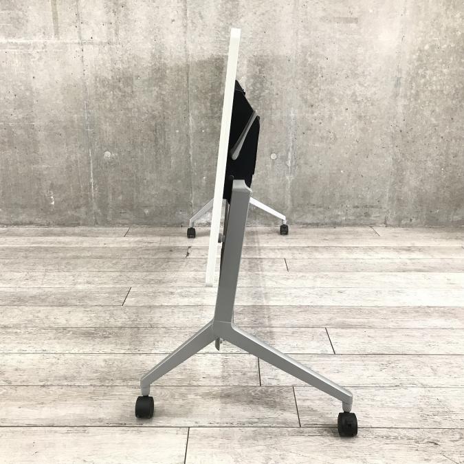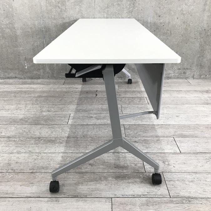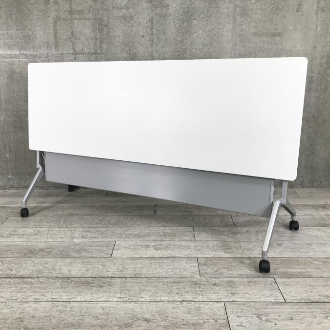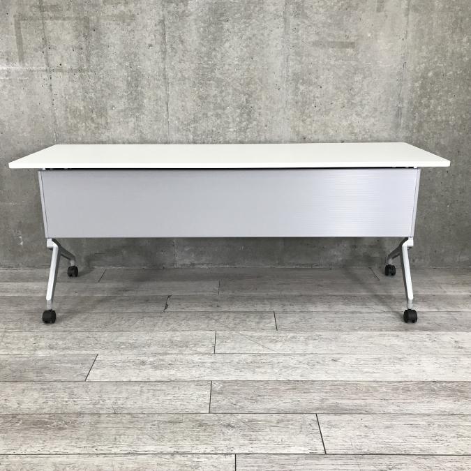 【会議・研修室などに・使わないときは畳んで省スペース!】■コクヨ製 リーフライン サイドスタックテーブル ■ホワイト天板 幕板付き W1800/D600サイズ ■2~3名での使用想定です【フラップテーブル/折りたたみテーブル/ミーテイングテーブル】- 足立・葛飾店