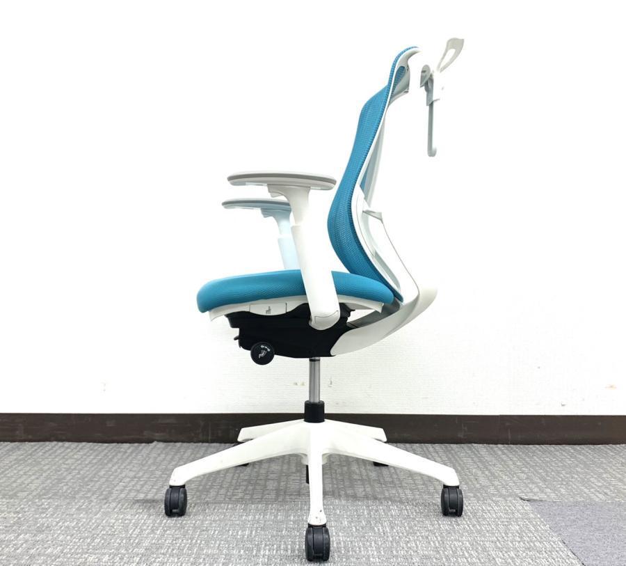 《現物写真だから安心!》オカムラ製の人気オフィスチェア【シルフィーメッシュ/可動肘/ヘッドレスト付き/ブルーグリーン】が先着1名様ご案内可能です!