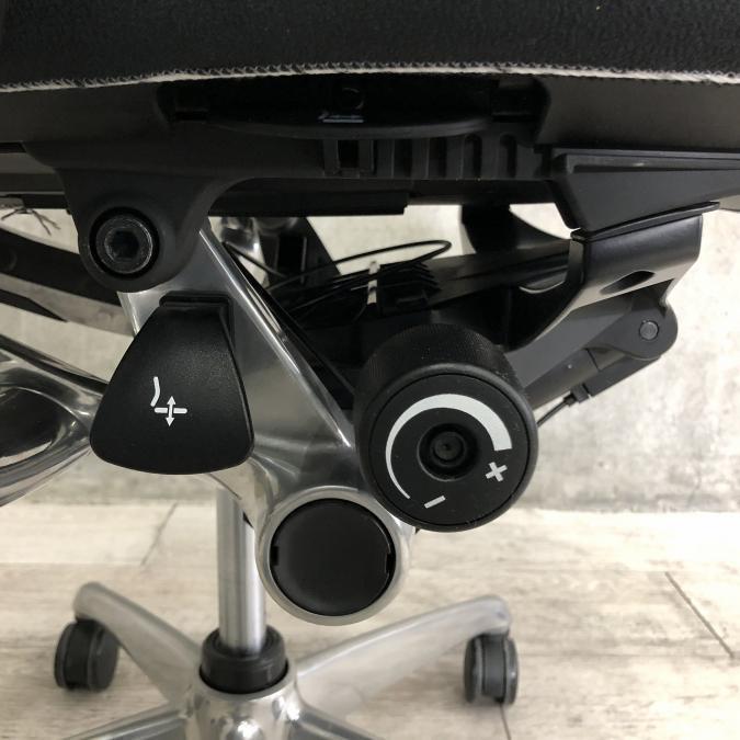 右手を座面下に下ろした位置にあるダイアルでお好みの強度に調節可能です。