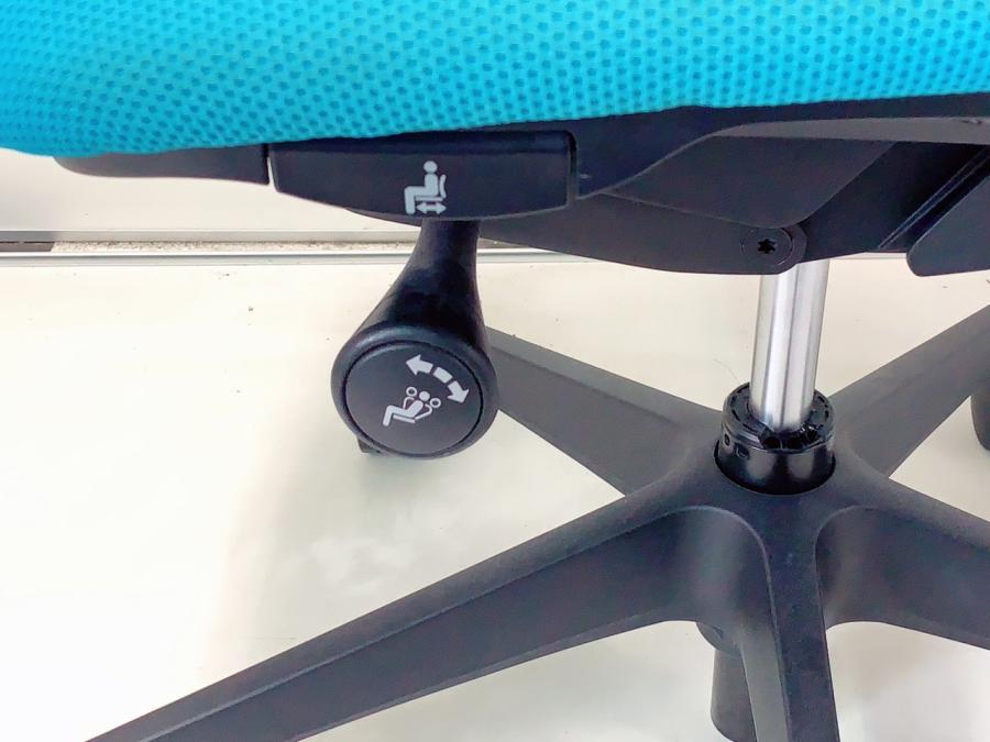 - 座面左下のダイヤルでリクライニングの固定と解除が行えます。 前傾ポジションをとることも可能です。