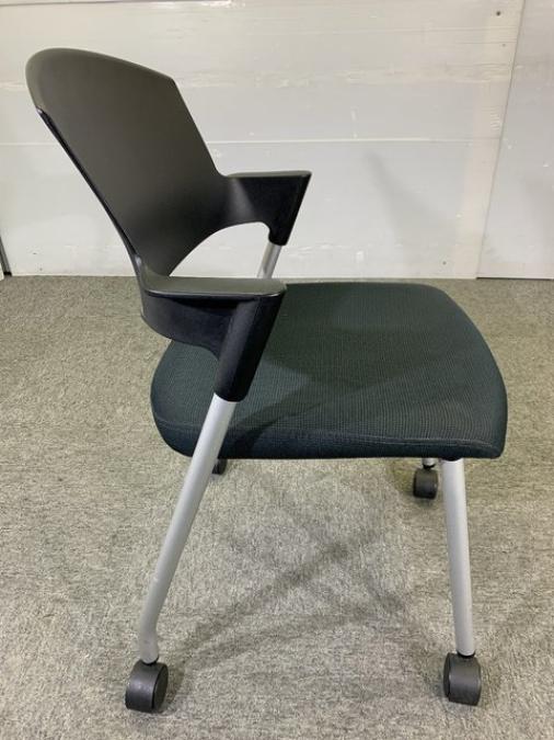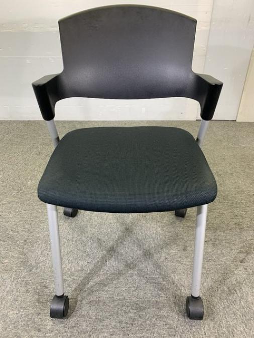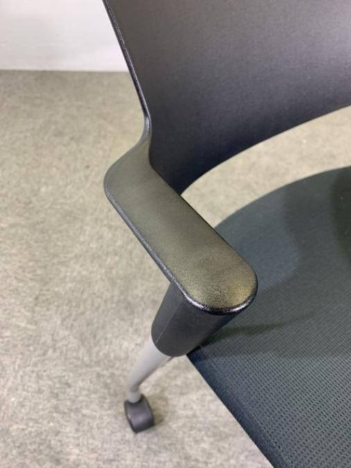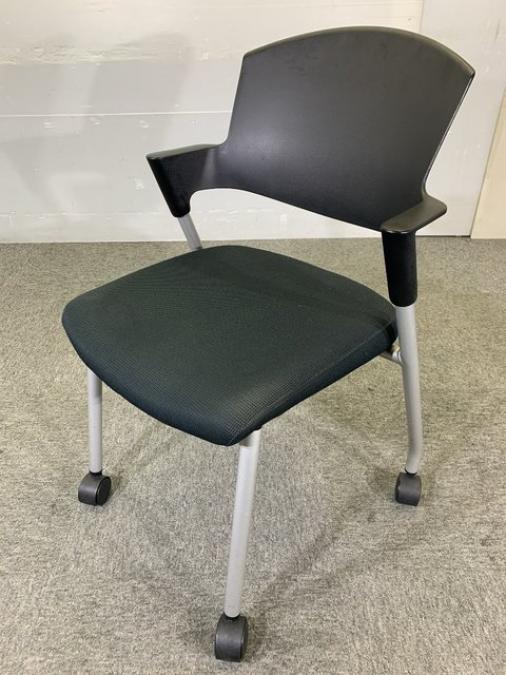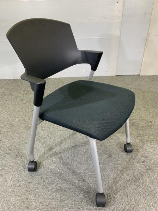 【6/16・8脚入荷予定!】【シンプルスマートなスタッキングチェア!分厚いクッションで長時間でも快適な座り心地!】■コクヨ製 プロッティ スタッキングチェア 肘付ミーティングチェア ■固定肘 ■キャスター付 ■ブラック ■背面樹脂 オフィスバスターズ梅田本店