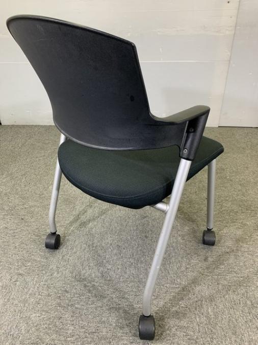 【シンプルスマートなスタッキングチェア!分厚いクッションで長時間でも快適な座り心地!】■コクヨ(KOKUYO)製 プロッティシリーズ スタッキングチェア 肘付ミーティングチェア ■固定肘 ■キャスター付 ■ブラック ■背面樹脂 【弊社使用欄:A01006552】