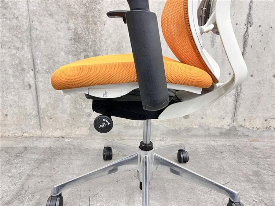 【在庫入替セール品!】【背のカーブを変えられる新感覚のオフィスシーティング!】■オカムラ シルフィーチェア 可動肘付 オレンジ ハンガー付 ホワイトフレーム ■新感覚のオフィスシーティング!【Okamrua Sylphy】