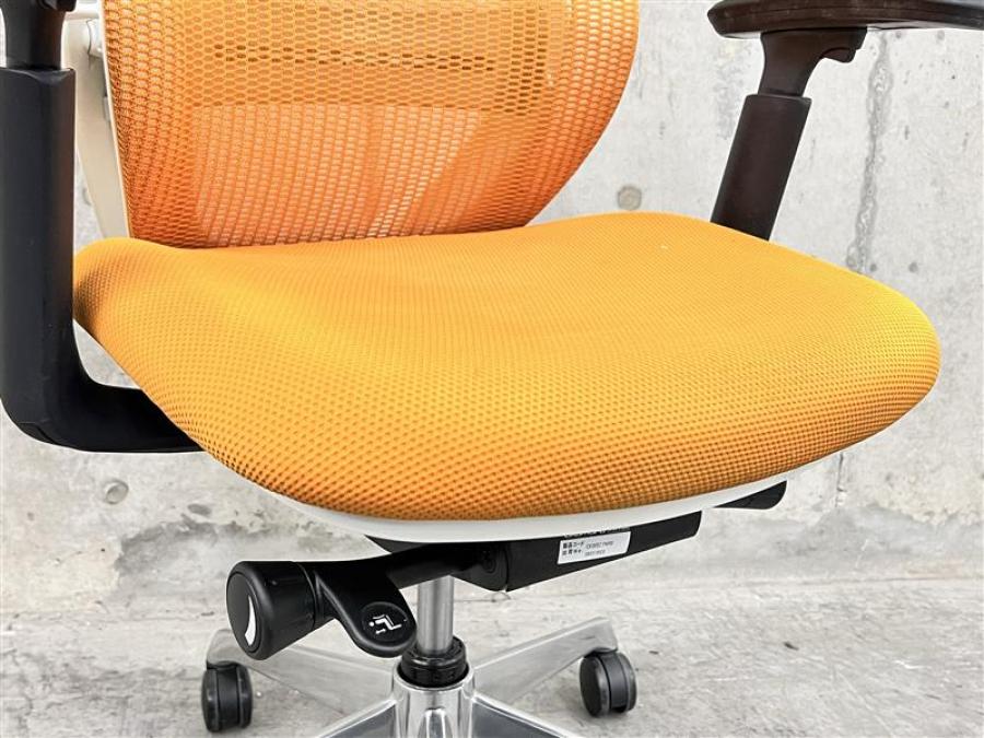 【前傾チルト機能付き】【オカムラ製品で最も人気を集める高機能メッシュチェア!】■オカムラ(okamura)製 シルフィ(Sylphy)チェア 肘付き ハイバック 背面メッシュ ■可動肘・ハンガー付き ■オレンジ ×ホワイトシェル
