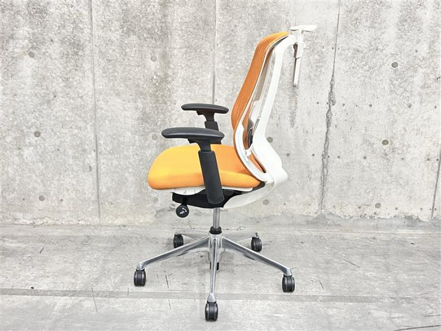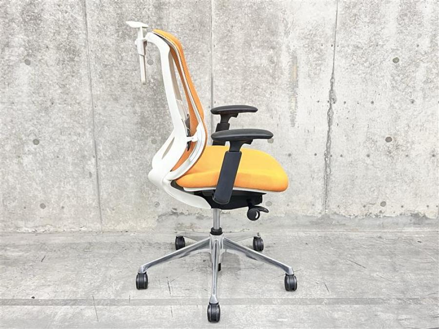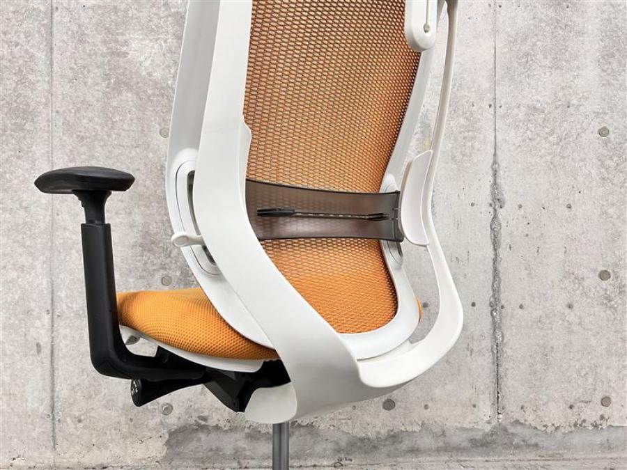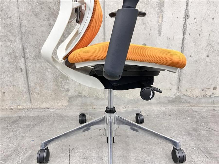 【在庫入替セール品!】【背のカーブを変えられる新感覚のオフィスシーティング!】■オカムラ シルフィーチェア 可動肘付 オレンジ ハンガー付 ホワイトフレーム ■新感覚のオフィスシーティング!【Okamrua Sylphy】