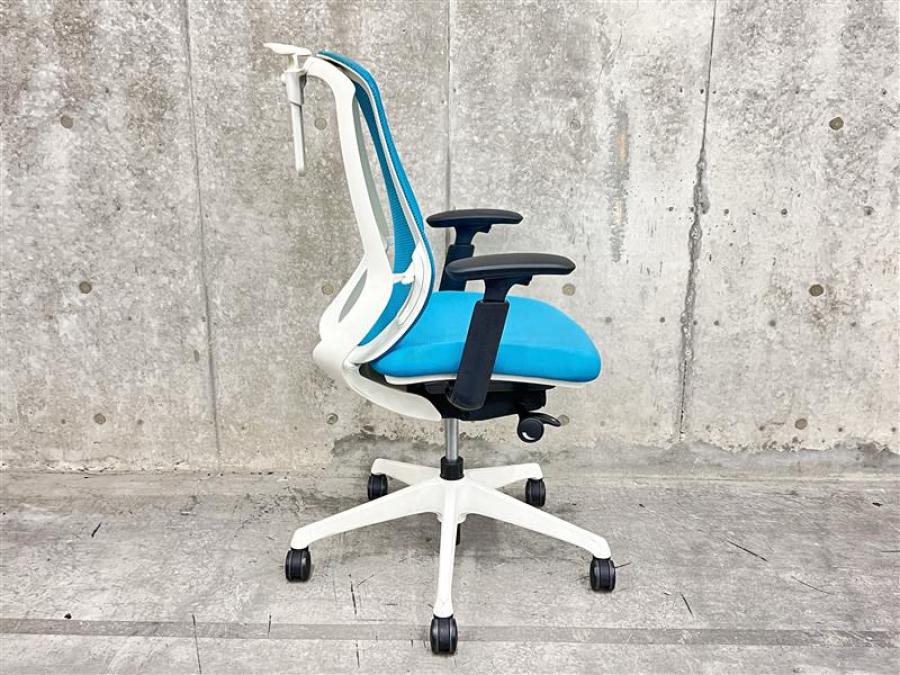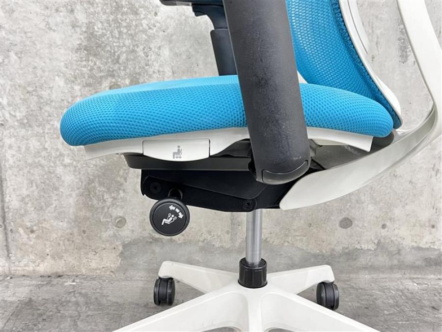 【今人気のワークチェア!】働く姿勢を変えるオフィスチェアが入荷!前傾機能付きの新感覚のオフィスシーティング!包み込まれるような快適な座り心地! ■オカムラ/シルフィーチェア/ブルーグリーン コートハンガー付
