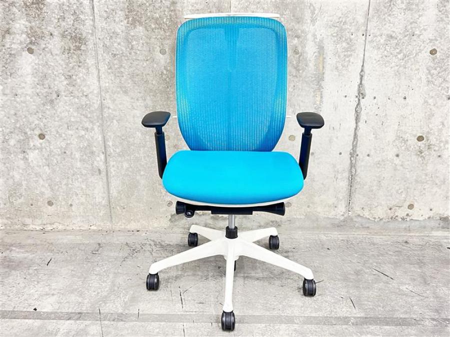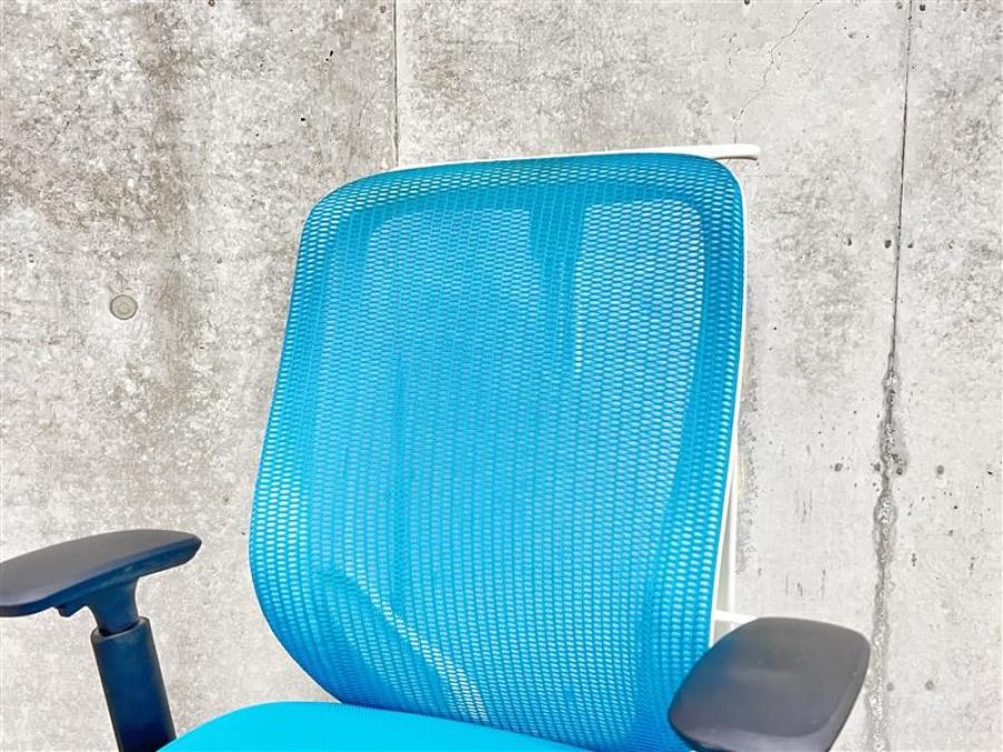 《現物写真だから安心!》オカムラ製の人気オフィスチェア【シルフィーメッシュ/可動肘/ヘッドレスト付き/ブルーグリーン】が先着1名様ご案内可能です!