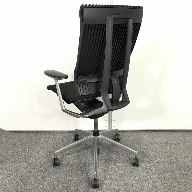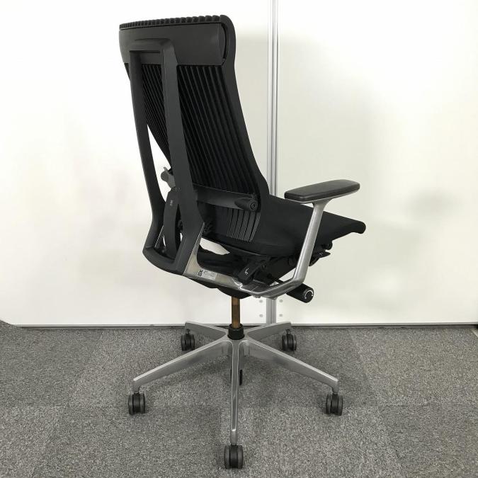 一番の特長は、着座時にチェアがピタっと体にフィットしてくれることです。 人がチェアの座り心地を調節するのではなく、チェアが人に合わせて動くのです!着座時に座面が沈み込みながら後方へスライドし、それと同時に背もたれの腰部分が前にせり出し、「ずっと座っていたくなる」と言われるほどの座り心地に調節してくれます。それを実現しているのが、A.L.S(アクティブ・ランバー・サポート)機構とP.S.S(パッシブ・スライド・シート)機構です。 さらに、背もたれにかかる体圧を徹底的に分析して作られた絶妙なカーブが、常に腰をサポートしつつ背骨のラインに沿ってくれます。