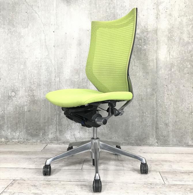 【オカムラ製の王道高級チェア!通気性ばっちりで長時間の着座も快適に過ごせます!】 ■オカムラ バロン (Baron) ハイバック肘無し 背メッシュ ■ライムグリーン×ブラックフレームサーキュラーバリューCO2削減量の算出について
