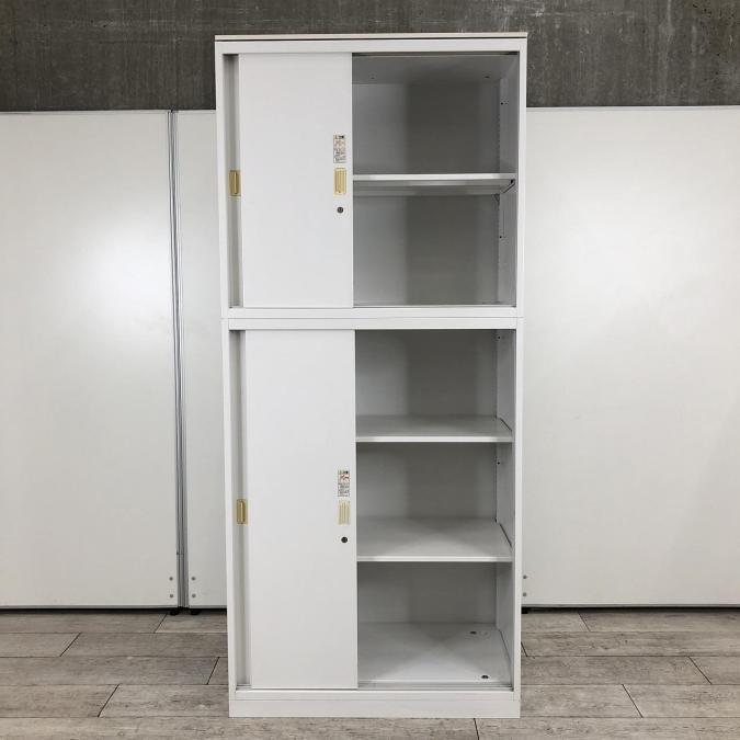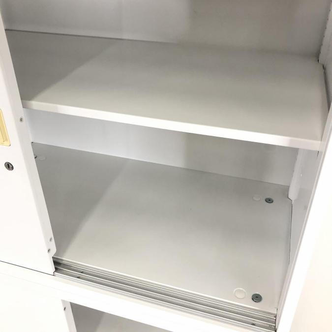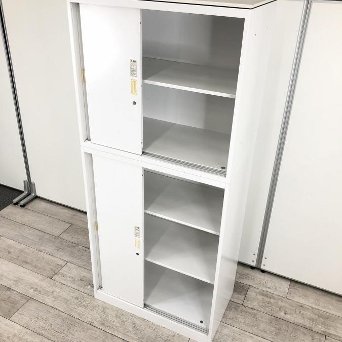 【スライド引き戸だから開閉スペースいらず!人気の書庫セット!】■オカムラ(okamura)製 レクトライン 上下引き違い 書庫セット ■ホワイト ■シリンダー錠 【弊社使用欄:A01035184/A01035183】