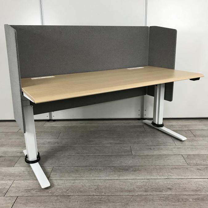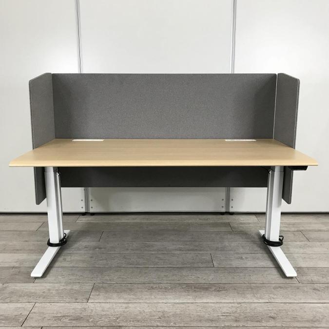 【H720~H1250㎜まで高さ調整可能!立ち姿勢を取り入れた新しいワークスタイルへ!】■オカムラ製 スイフト(Swift) 電動昇降デスク 昇降テーブル 電動昇降 (レバータイプ) 平机 ■幅:1550mm 配線二口 木目天板 ■パーテーション付【ABW商材】【関東倉庫在庫品】【弊社使用欄:A00973341】- 全店共通商品