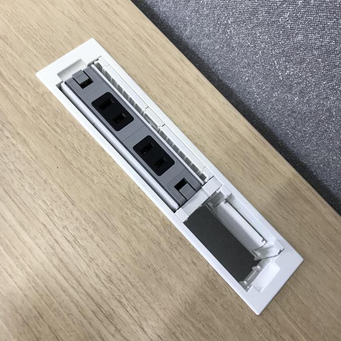 天板中央には便利な配線口付きです。