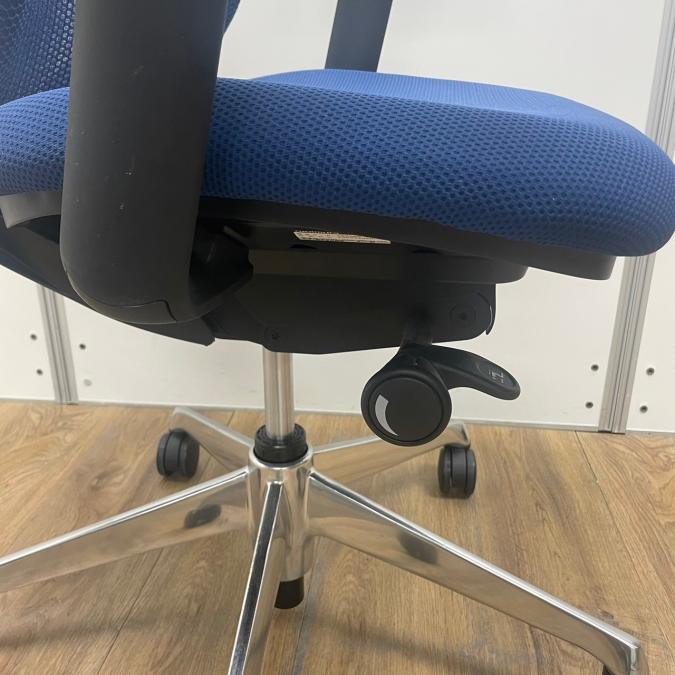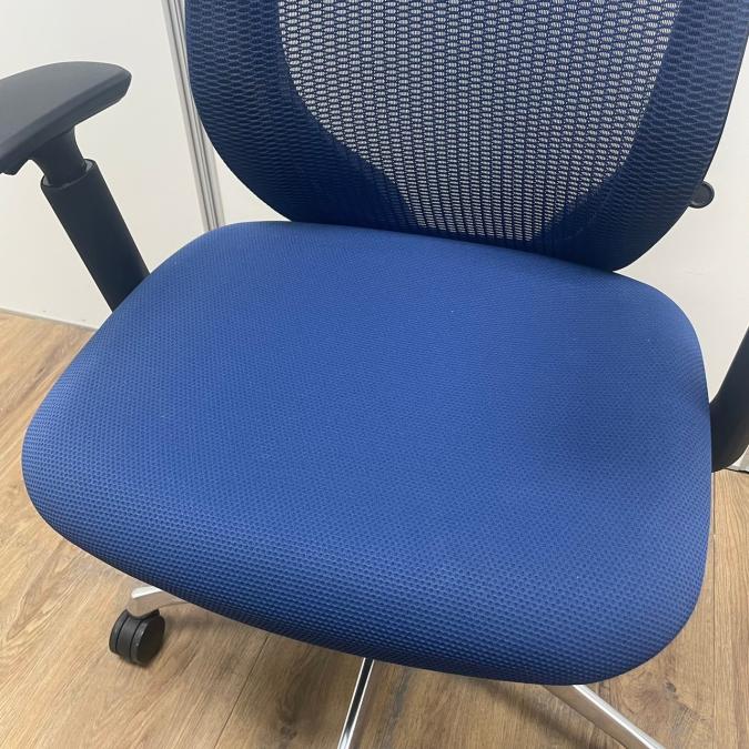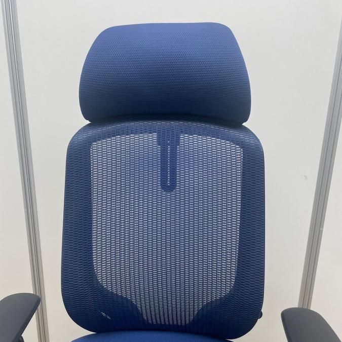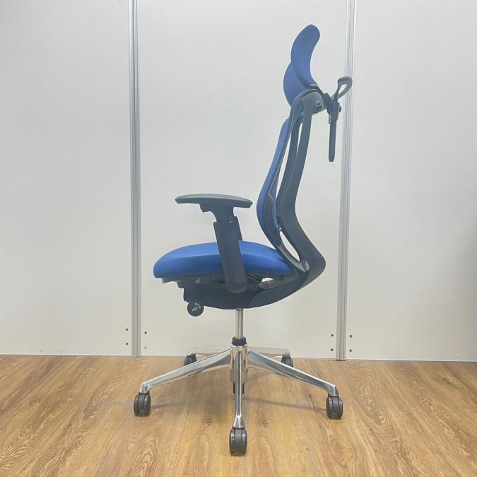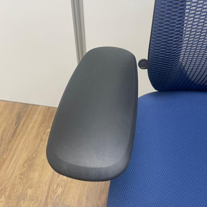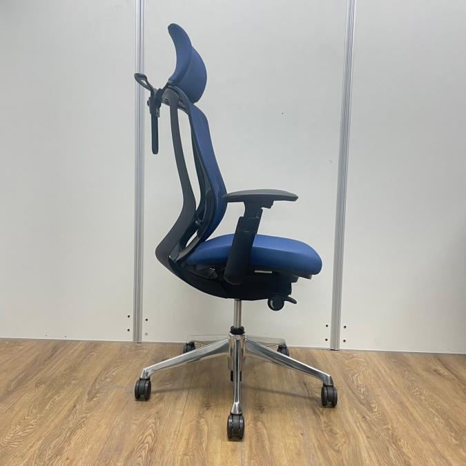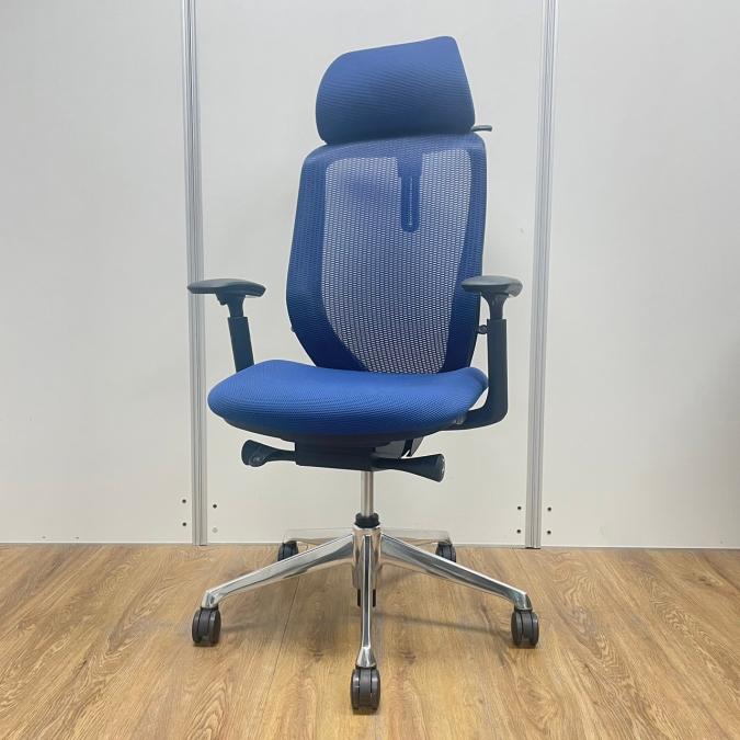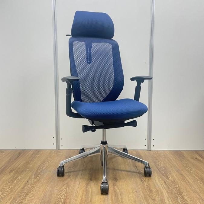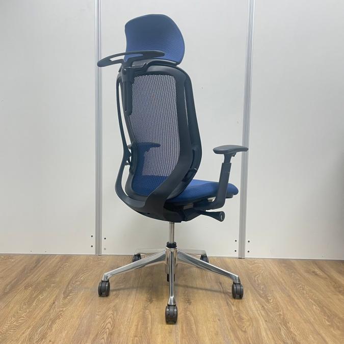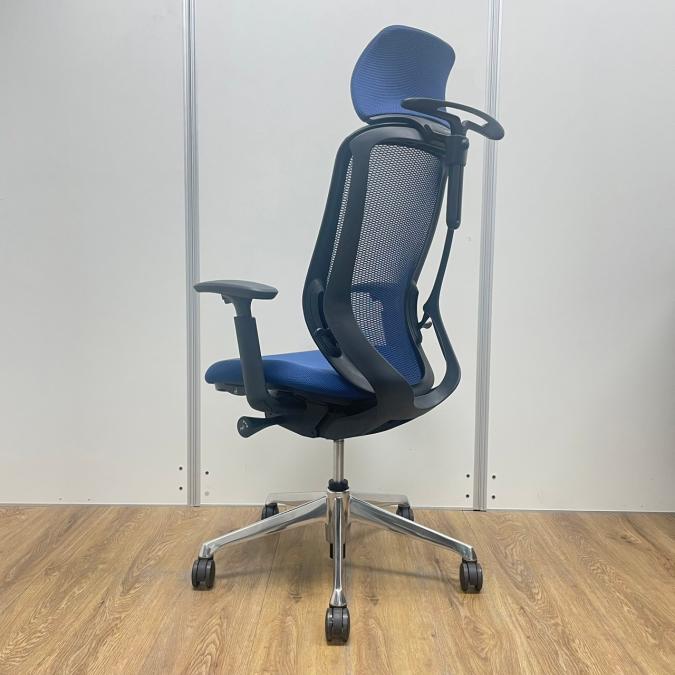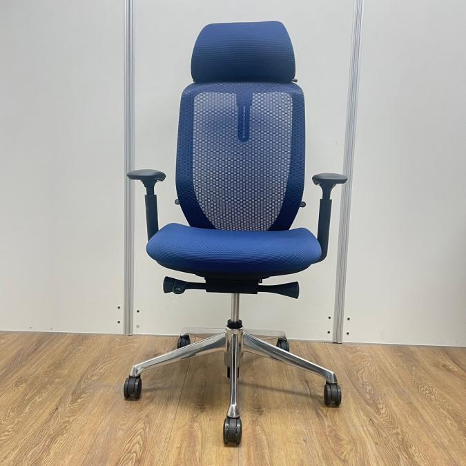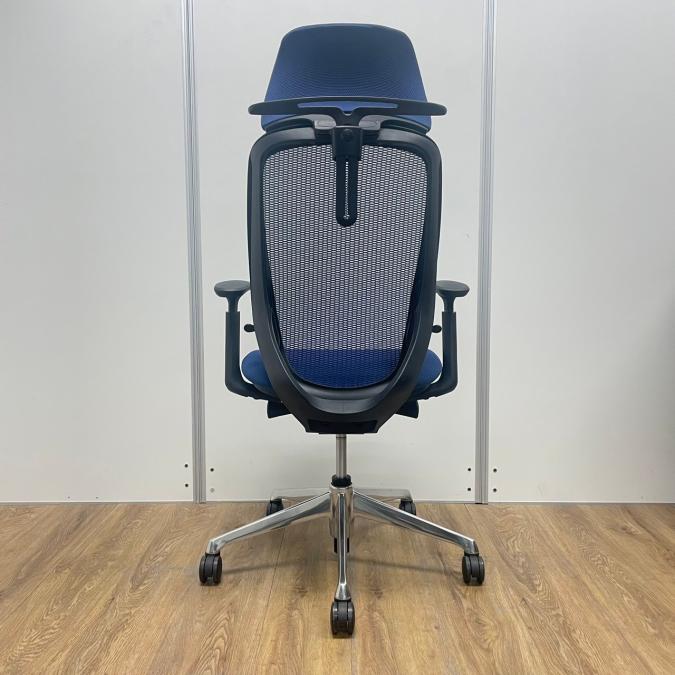 オカムラ製 シルフィーシリーズ ネイビーブルー ヘッドレスト付 ポリッシュ脚 アジャストアーム※可動肘 ヘッドレスト 肘付きハイバックチチェア!!- 京都東寺店