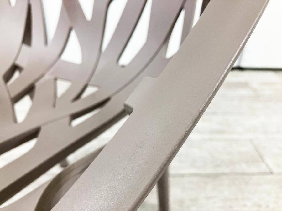 葉脈をモチーフにしたようなポリアミド製の成型シェルが特徴で、屋内外で使用可能。3脚までのスタッキングに対応するマルチガーデンチェアです。