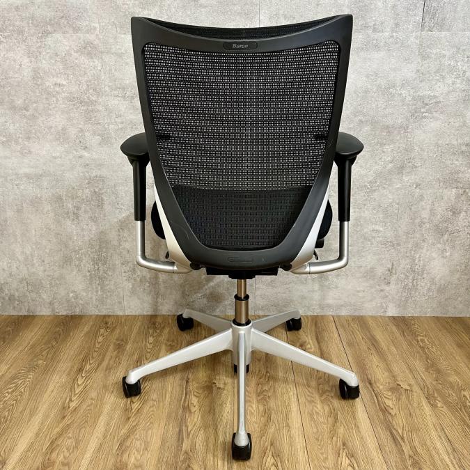 【定価約20万円以上】【長時間の着座でも疲れにくいサポート感!】■オカムラ製 バロンチェア 肘付ローバック ■ブラック ■固定肘 ■メッシュ背面 【ベストなポジションが得られる先進設計!】